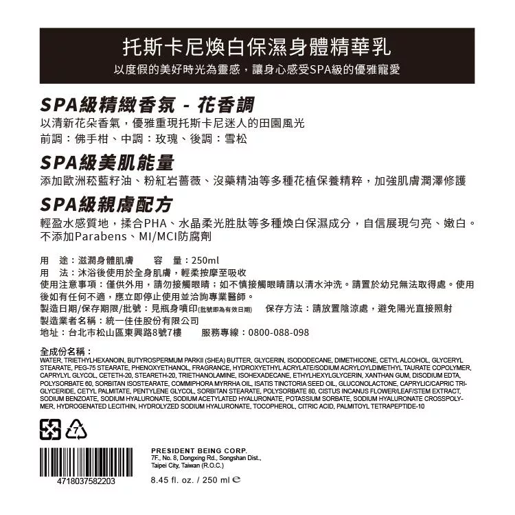 Ksolite托斯卡尼煥白保濕身體精華乳250ml