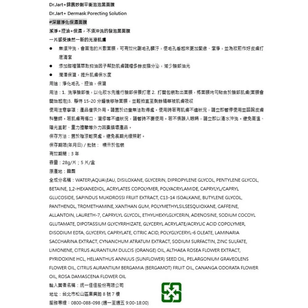 Dr.Jart+錦囊妙劑平衡泡泡黑面膜(5片/盒)