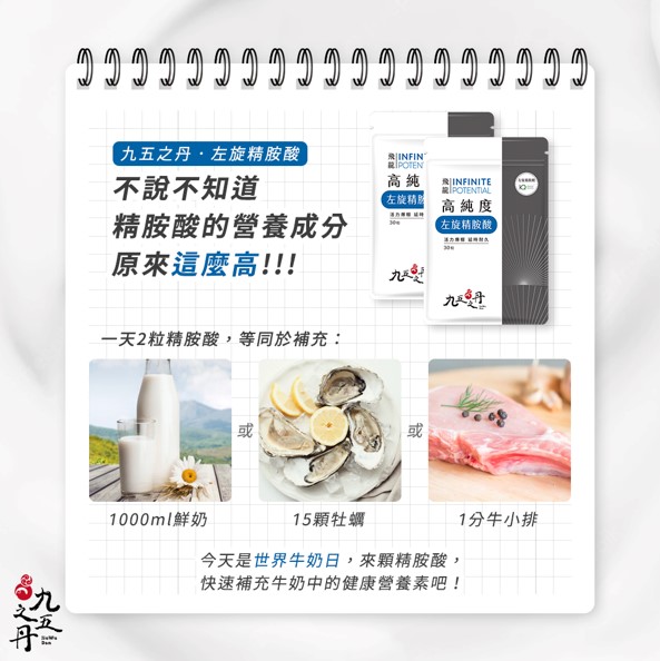 想要能量爆發、增強信心但怕廉價的化學合成精胺酸吃多傷身?天然且高級的精胺酸要花很多錢? 九五之丹®顛覆你對精胺酸的認知,與市面上的低價化學合成精胺酸不同,採用權威專利天然原料,一天2500mg~5000mg爆量精胺酸,讓你每天都能精力充沛 【八大選擇九五之丹精胺酸原因】 💪 2023年超稀有世界品質評鑑金獎左旋精胺酸 💪 全國際高級品牌授權原料配方 💪 網路月銷量最高精胺酸品牌 💪 使用最高級的日本Kyowa左旋精胺酸 💪 每顆含500~550mg高劑量左旋精胺酸 💪 精胺酸純度為99%以上,市面上最高 💪 有Non-GMO非基改、非動物來源聲明,對身體幾乎無負擔 💪 採用透明素食膠囊,不加色素,全素者也可安心食用 最高純度99%以上的精胺酸 超高CP值,絕對顛覆你對精胺酸的認知