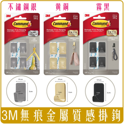 《 Chara 微百貨 》 3M 無痕 金屬 質感 小型 掛鉤 不鏽鋼 黃銅 霧黑 4個入 團購 批發