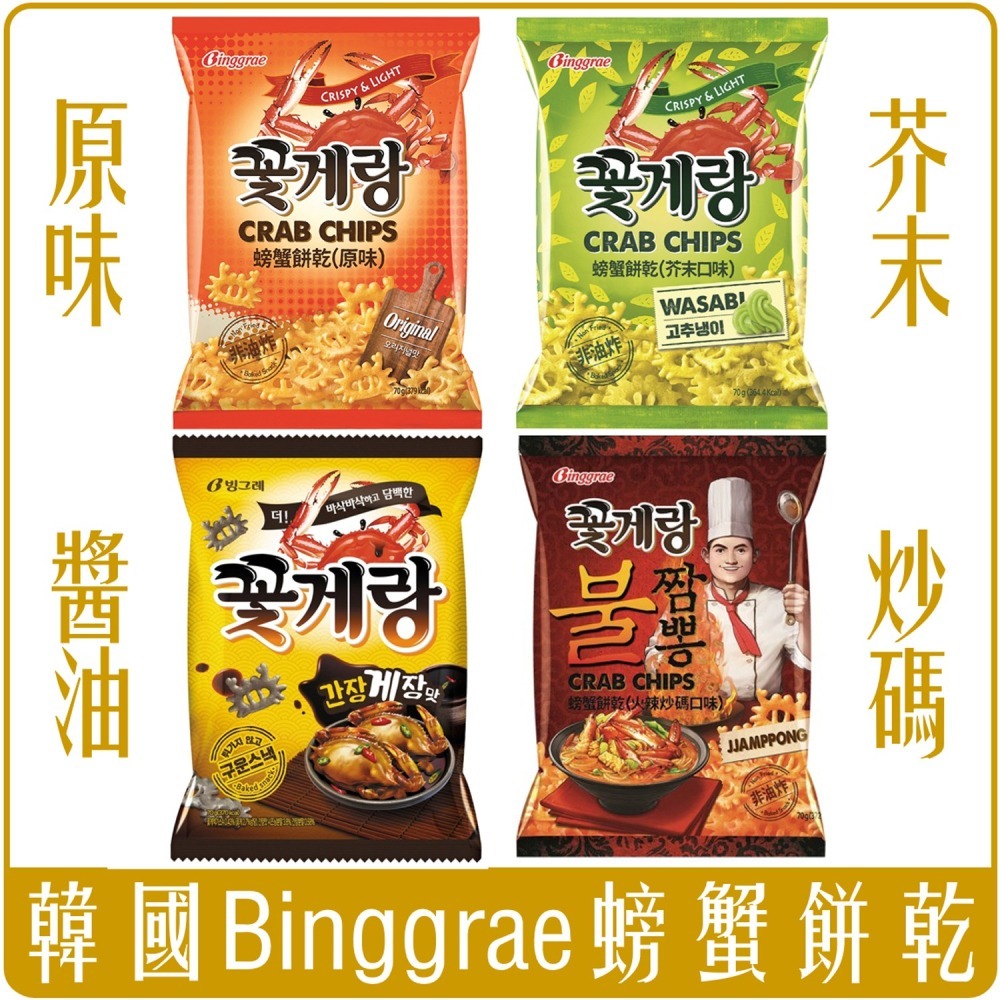 《 Chara 微百貨 》 韓國 Binggrae 賓格利 螃蟹 餅乾 系列 70g 原味 芥末 炒碼 醬油