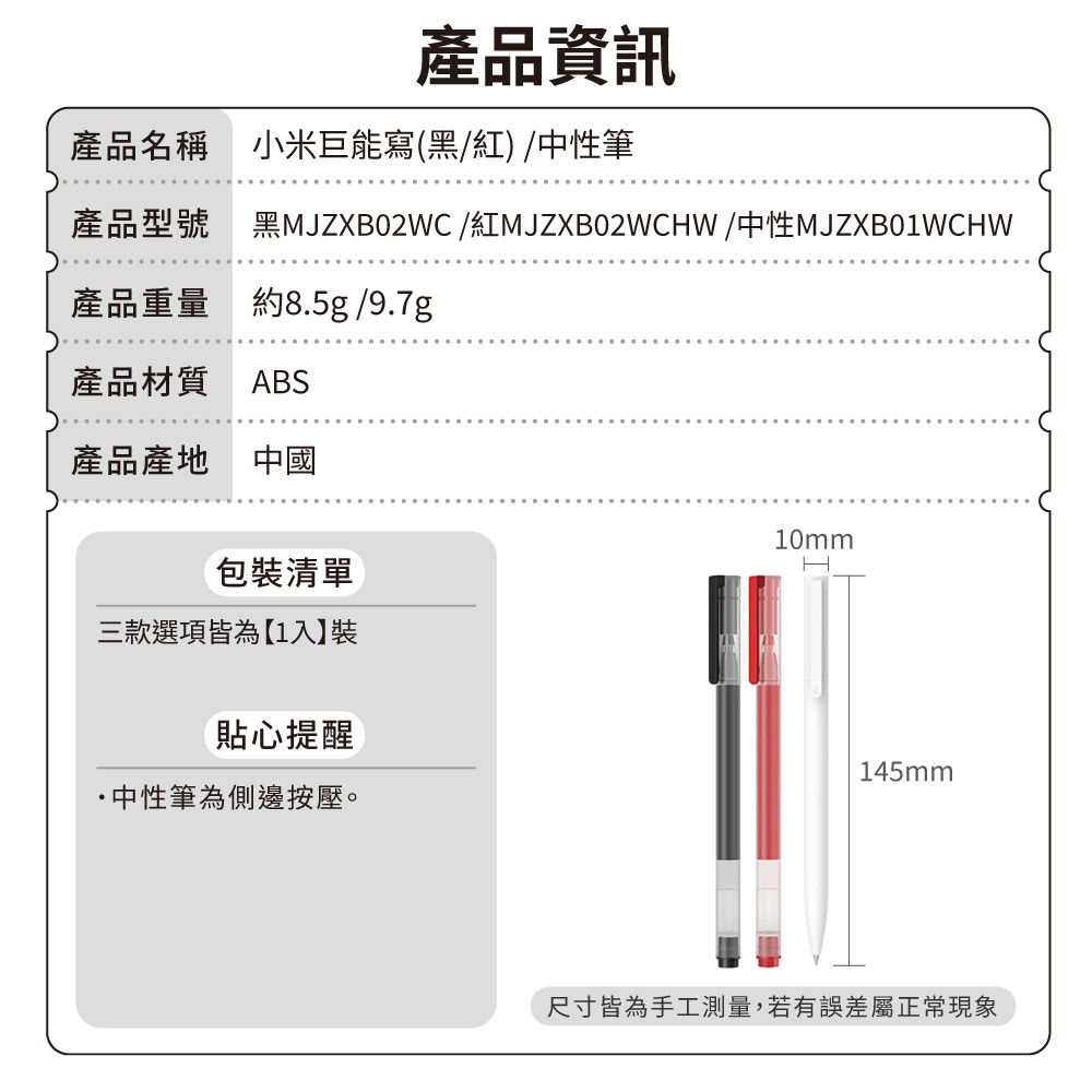 『來人客』 小米 巨能寫 中性筆 原子筆 彩色筆 小米筆 多彩 0.5mm 小米中性筆 紅色 黑色 水性筆