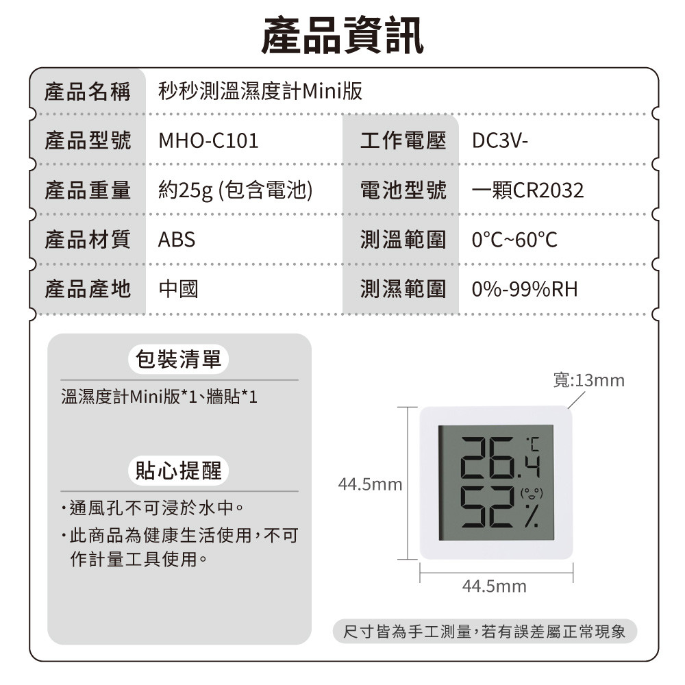 • 秒秒測溫濕度計Mini版 秒秒測溫濕度計Mini版