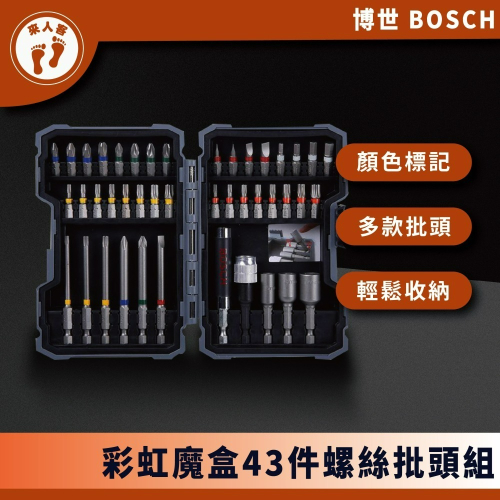 『來人客』 BOSCH 博世 彩虹魔盒 43件螺絲披頭套組 彩色批頭 批頭組 螺絲批頭套裝 螺絲刀