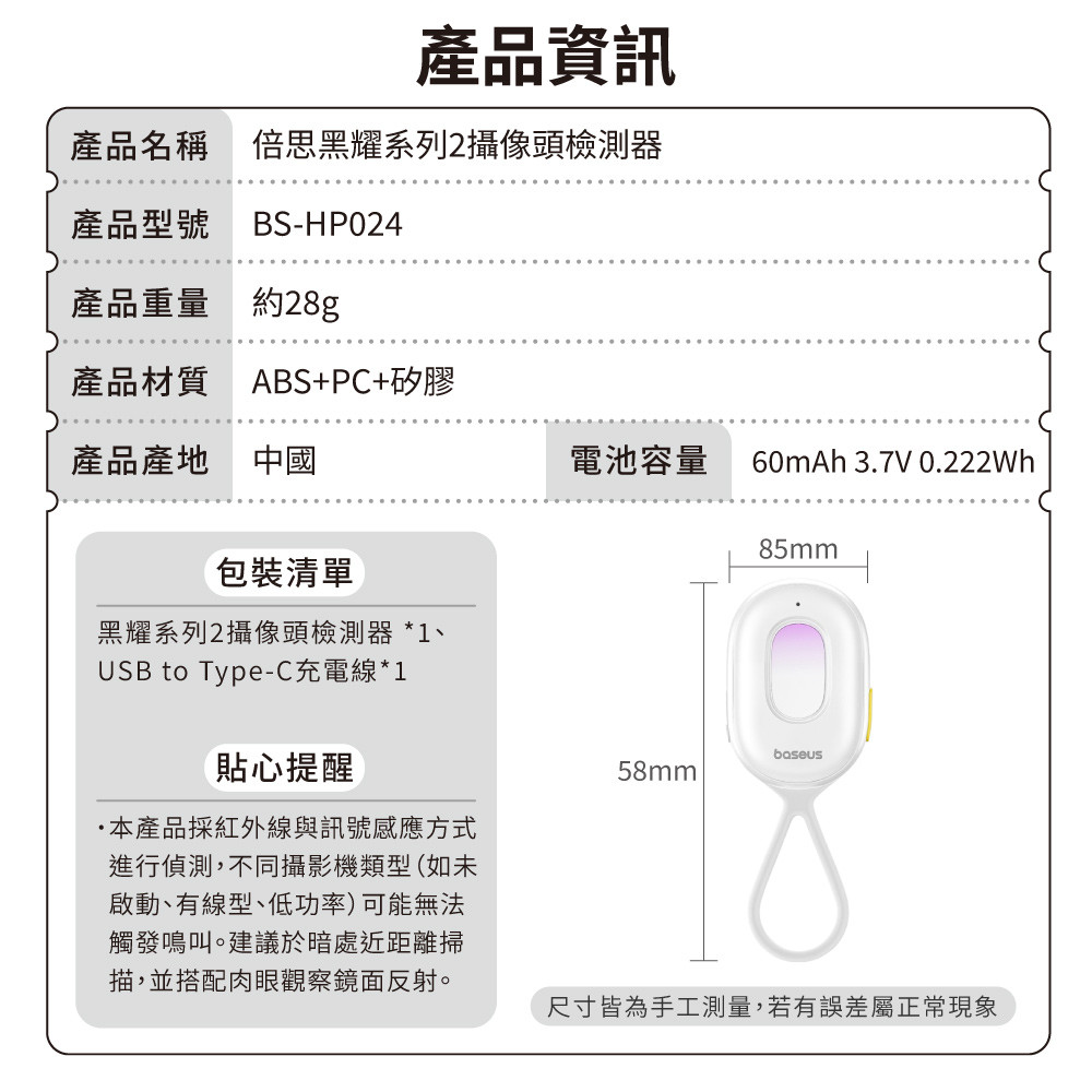 『來人客』 Baseus 倍思 黑耀系列2 攝像頭檢測器 紅外線檢測器 防偷拍 保護隱私 飯店 民宿 探測器 防偷拍