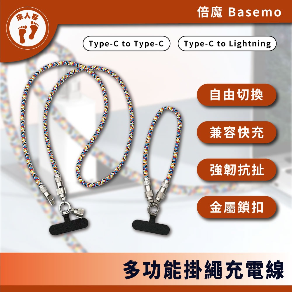 『來人客』 Basemo 倍魔 多功能掛繩充電線 掛繩充電線 手機掛繩 編織充電線 手機充電線 PD快充線