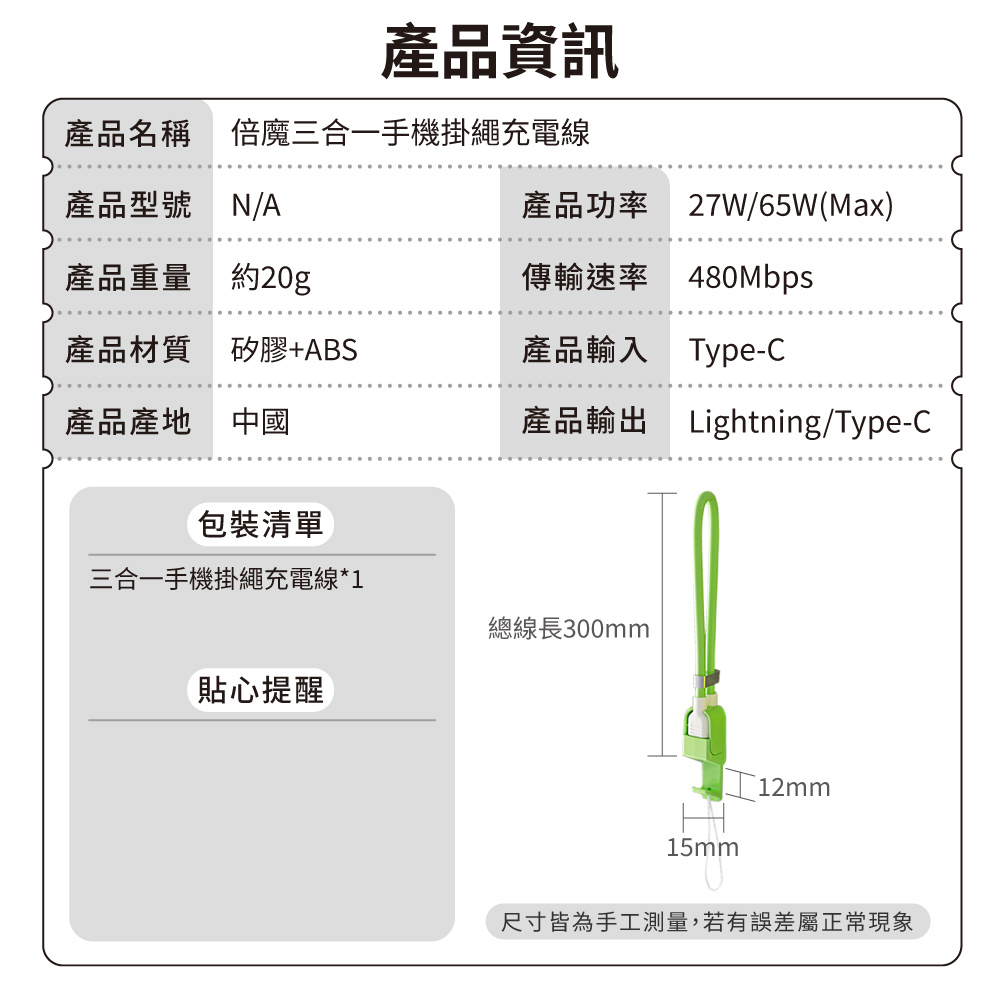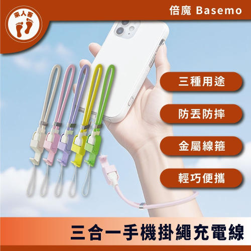 『來人客』 Basemo 倍魔 三合一手機掛繩充電線 掛繩充電線 手機掛繩 充電線 手機充電線 PD快充線 充電線