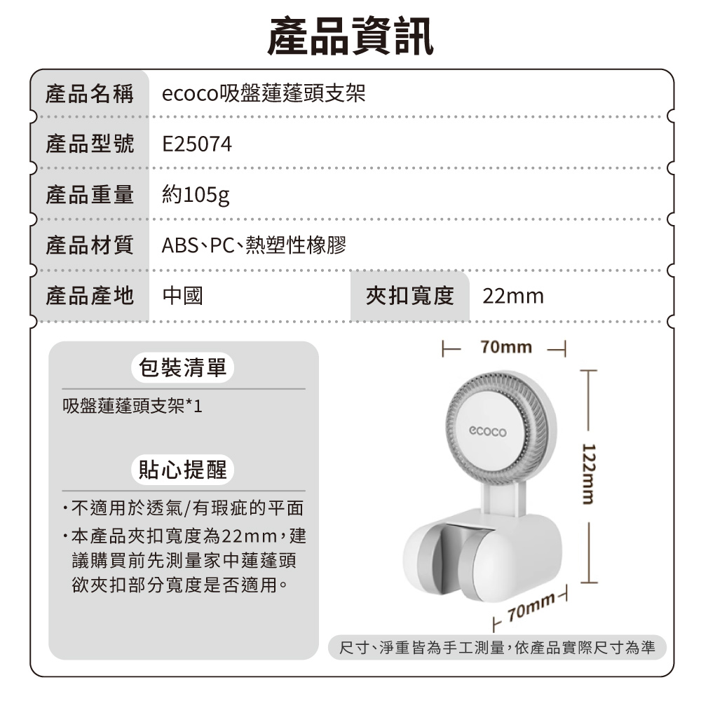 『來人客』 ecoco 意可可 吸盤蓮蓬頭支架 免打孔花灑架 蓮蓬頭掛架 吸盤蓮蓬頭掛座 浴室花灑架 可調式掛架