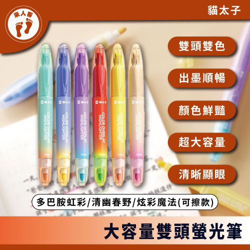 『來人客』 貓太子 大容量雙頭螢光筆 雙頭螢光筆 大容量螢光筆 記號筆 手帳筆 重點筆 12色 重點螢光筆 疊色