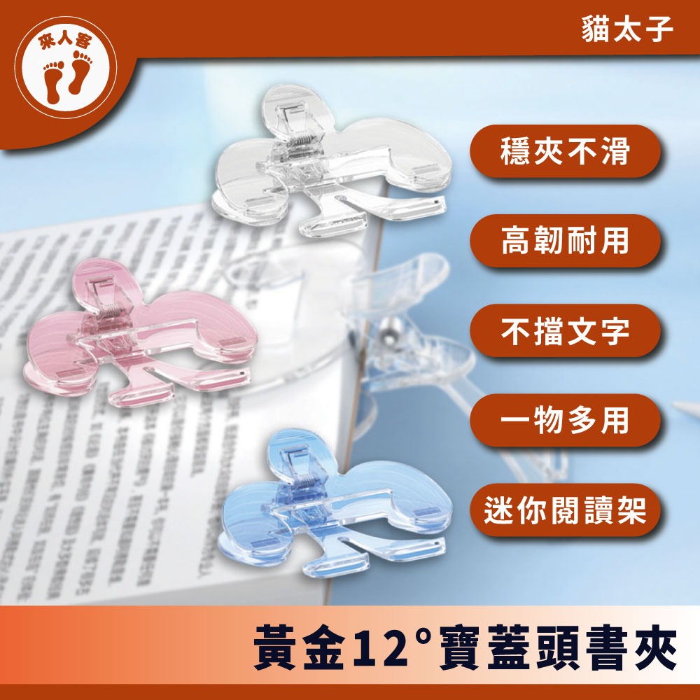 『來人客』貓太子 黃金12°寶蓋頭書夾 書本固定夾 文件夾 壓克力夾多功能夾 迷你閱讀器 手帳夾 多功能夾