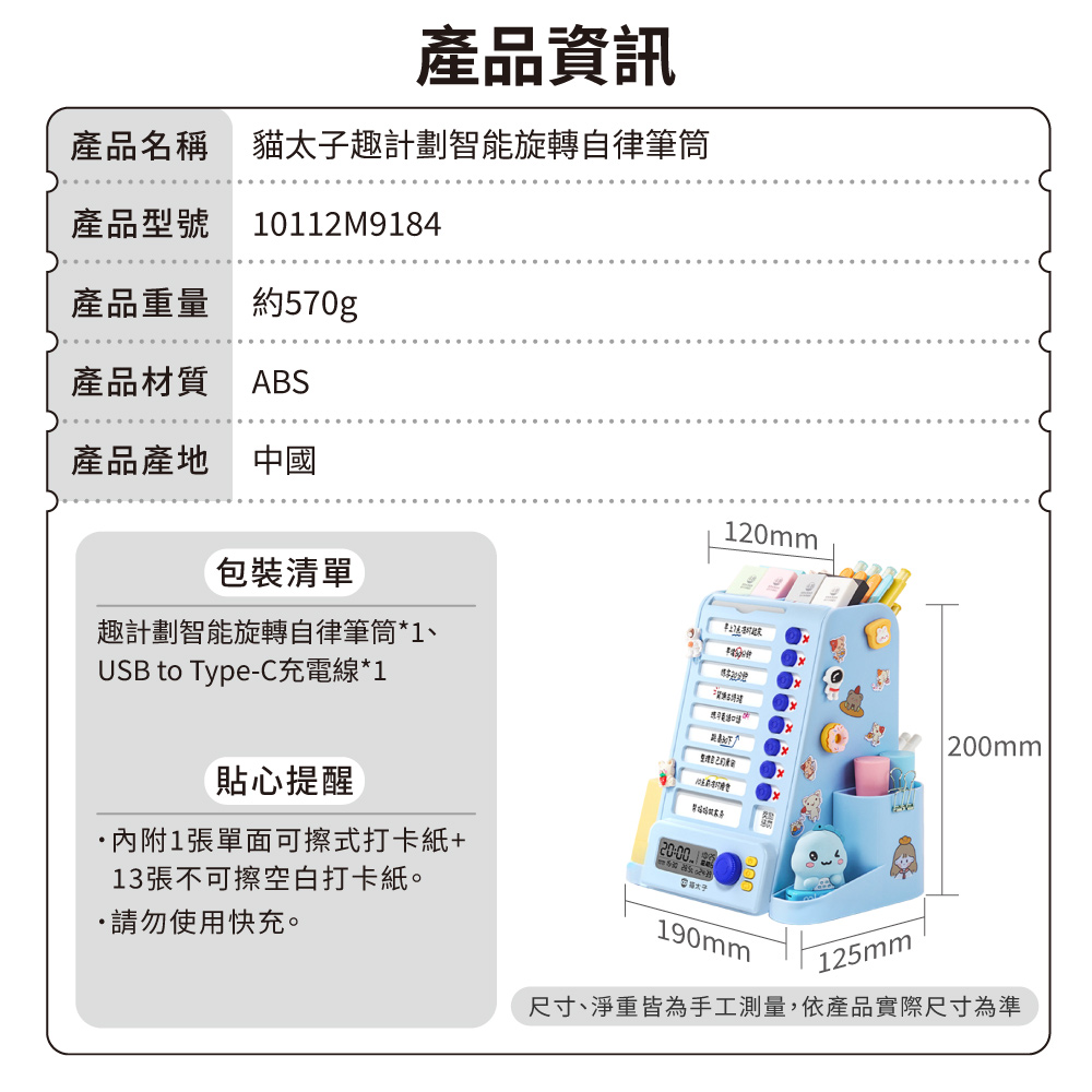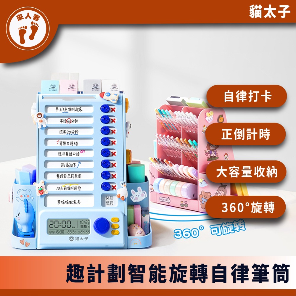 『來人客』貓太子趣計劃智能旋轉自律筆筒 筆筒 計時 自律打卡器 多功能收納盒 六合一 收納盒 文具收納 大容量筆筒