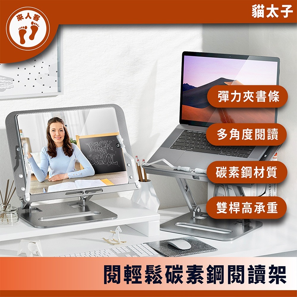 『來人客』貓太子 南國書香 閱輕鬆碳素鋼閱讀架 閱讀書架 平板支架 讀書架 折疊閱讀架 筆電支架 夾書器 樂譜架 閱讀