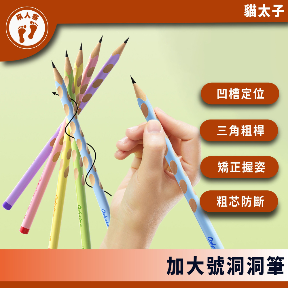 『來人客』貓太子 彩色加大號洞洞筆 HB 2B 兒童鉛筆 粗三角鉛筆 洞洞筆 2B鉛筆 大三角鉛筆 粗鉛筆