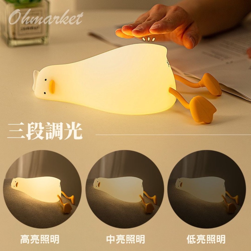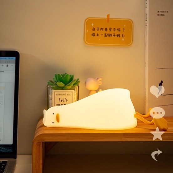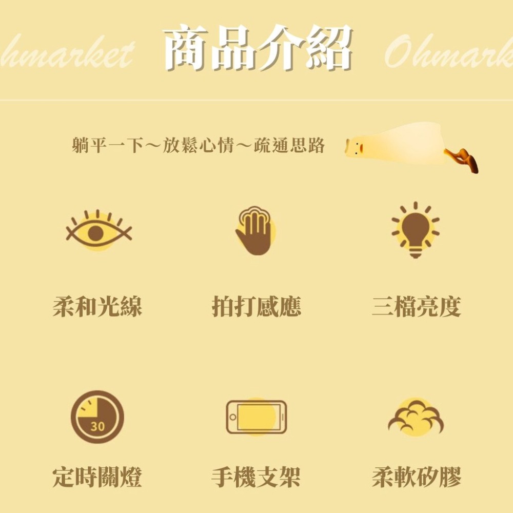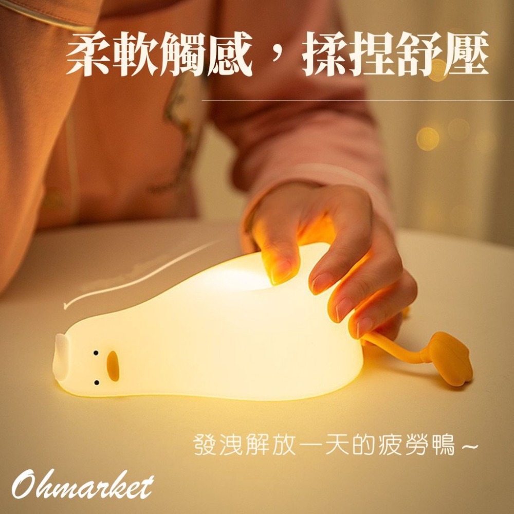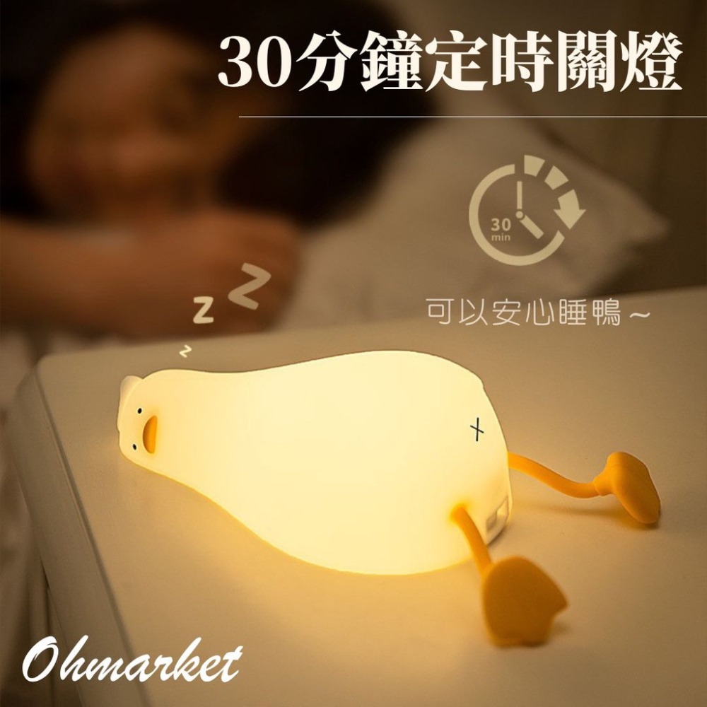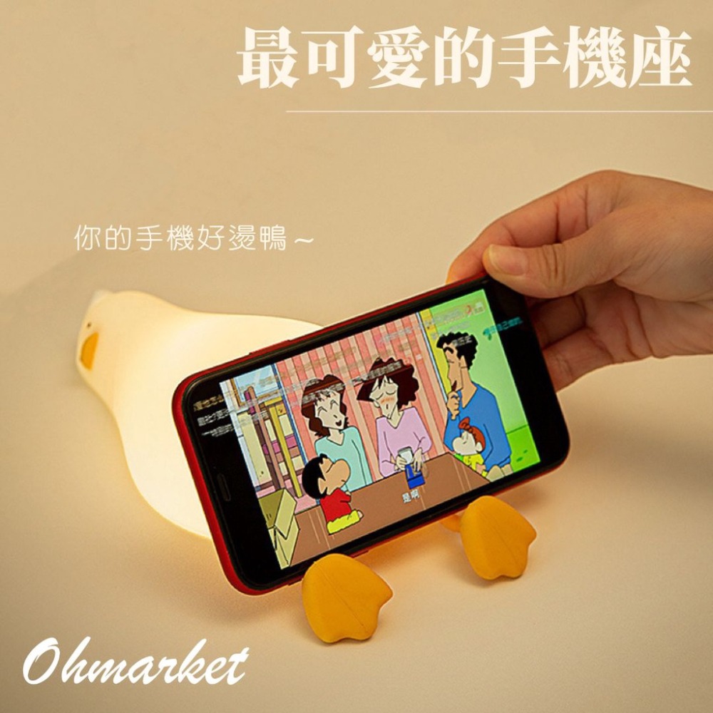 ✨✨可愛柔軟矽膠材質平躺鴨小夜燈~可以30分鐘定時自動關燈,也可以當手機座使用喔 !