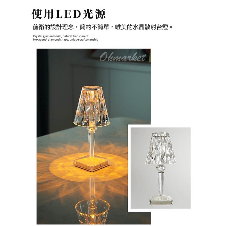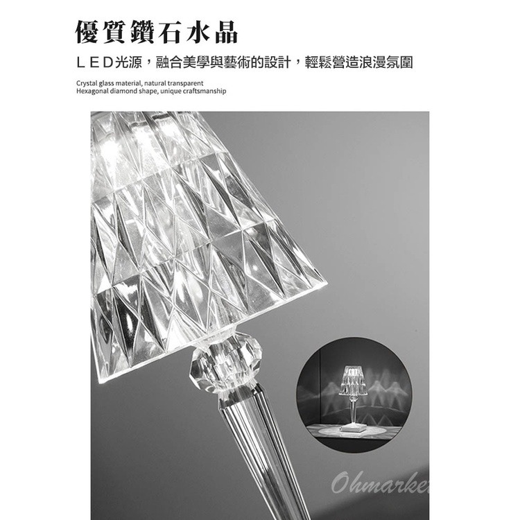 【水晶鑽石台燈尺寸】:底座8.6cm x 高26cm