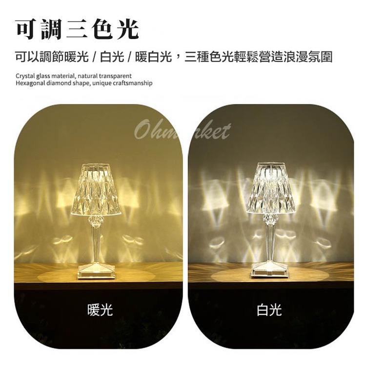 可以輕鬆營造浪漫散射光影氛圍的水晶檯燈~可以充電免插電使用!有三種燈光顏色可以切換,不管當居家擺設或是營造浪漫氛圍都很實用!