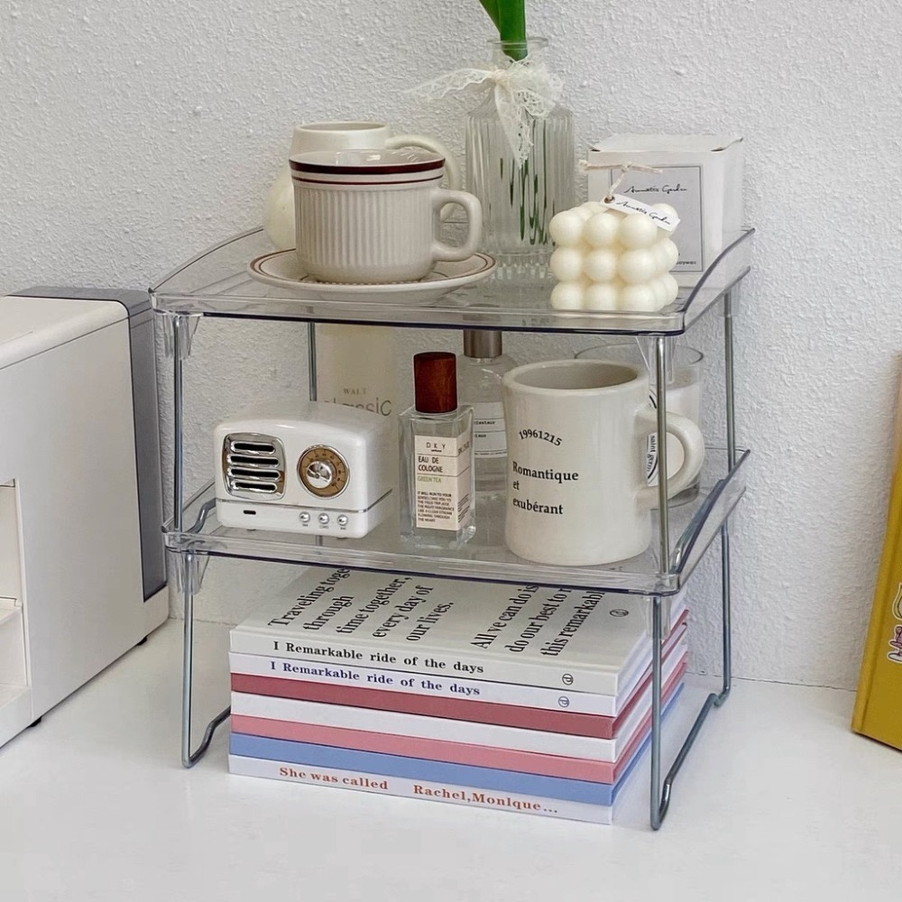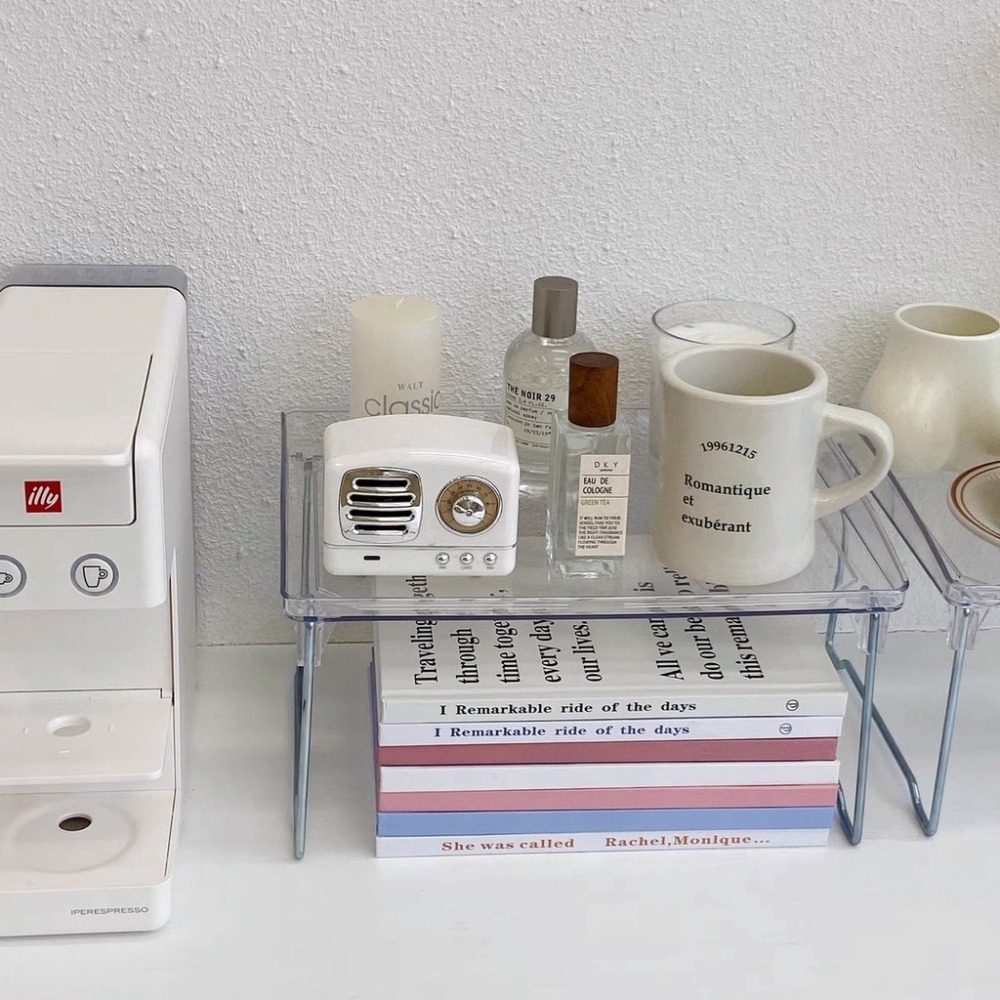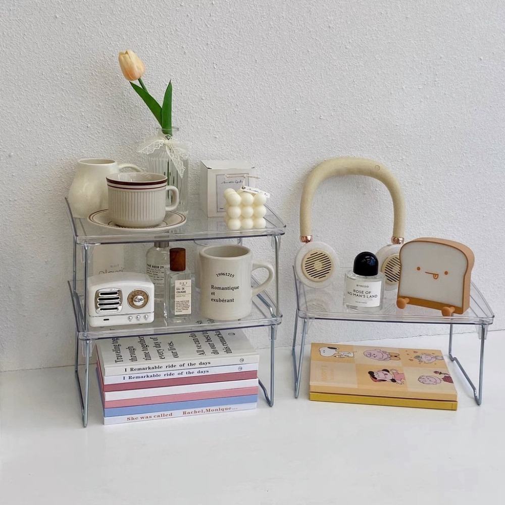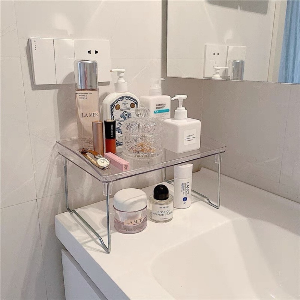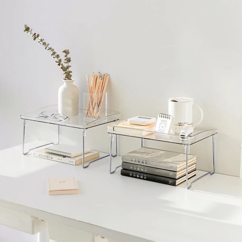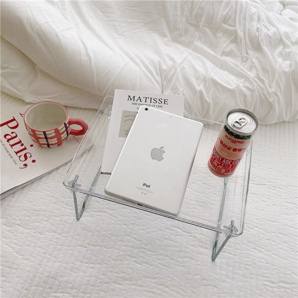 多功能韓系透明折疊小桌子~可以用來當杯架、文具收納層架、化妝品 盥洗用具收納臺,在書桌上、床上、廚房浴室都很適合使用!不只顏值高~實用性又超強🥰💪🏻
