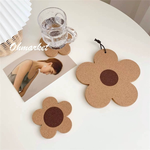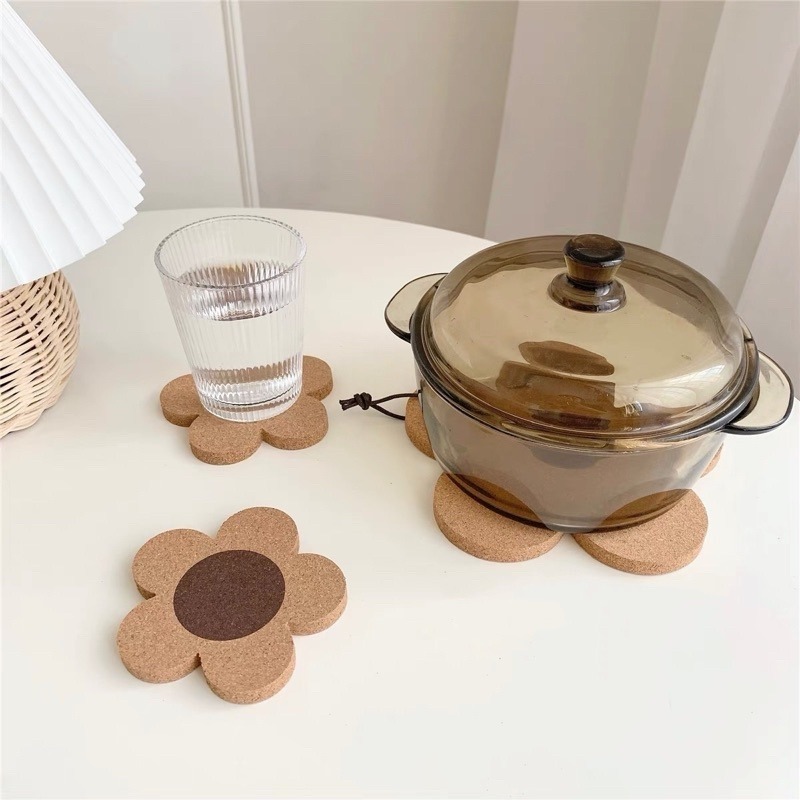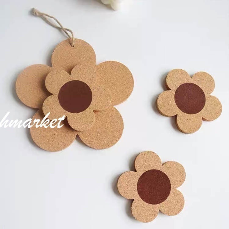 可愛的花朵造型隔熱墊,軟木材質可以吸水 又可以掛在牆壁上收納~方便又好看🥺🥺