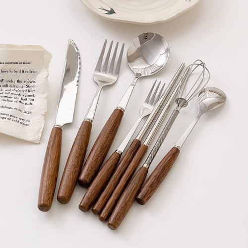 ✨✨韓系木柄簡約西餐具,流線握柄弧度舒適好握~304不鏽鋼金屬材質,厚實手感,用來當下午茶餐具或正餐餐具 都很適合🥰