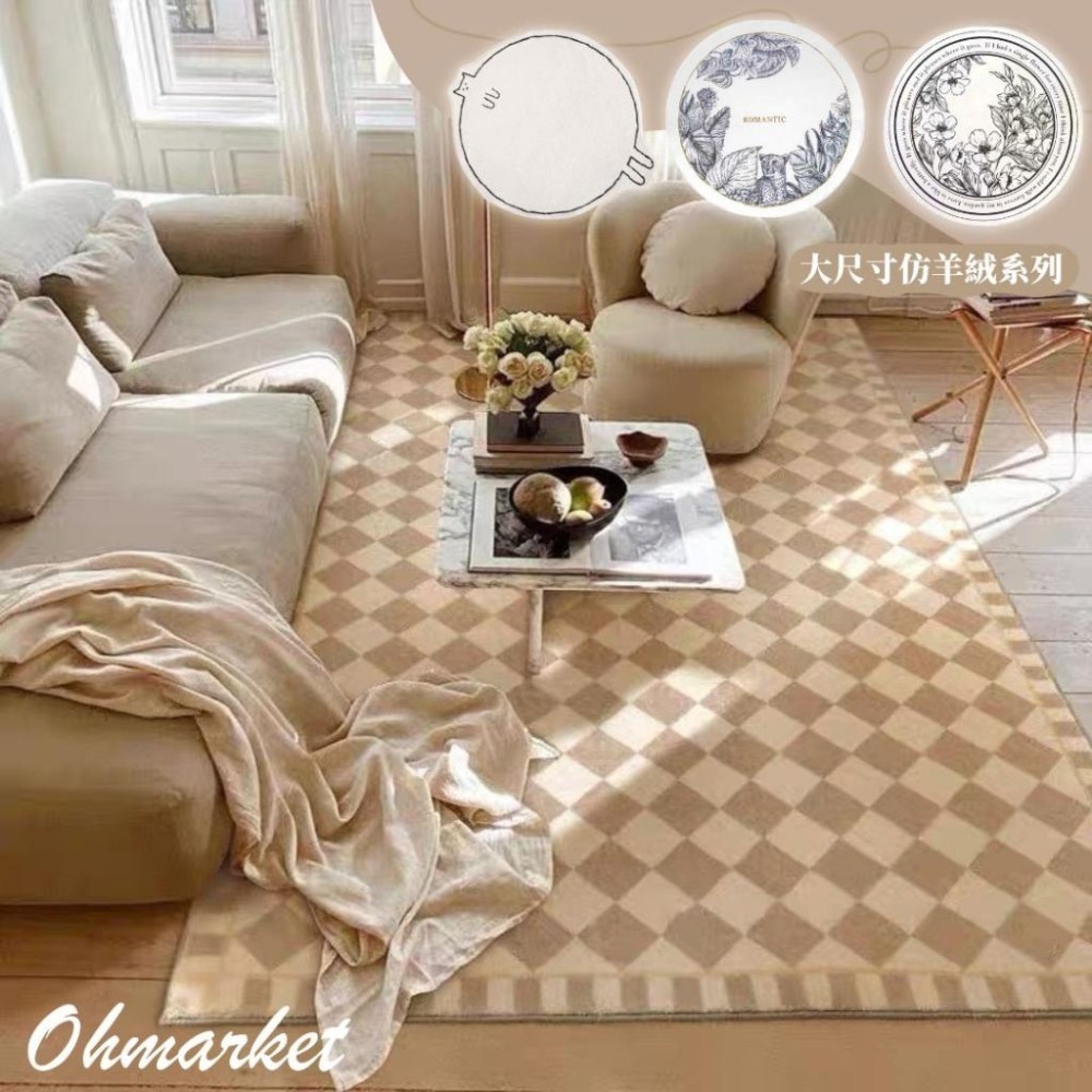✨✨✨北歐居家風格地墊 ,柔軟滑順的仿羊絨材質 !超美柔和奶茶色配色,和質感設計風格黑白圓點圖案兩款,瞬間提升佈置質感,地墊背底是塑粒材質 有防滑功能,美觀又實用💖~