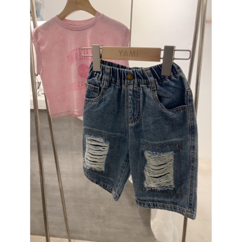 9733 牛仔五分補布破褲 90-130/8折