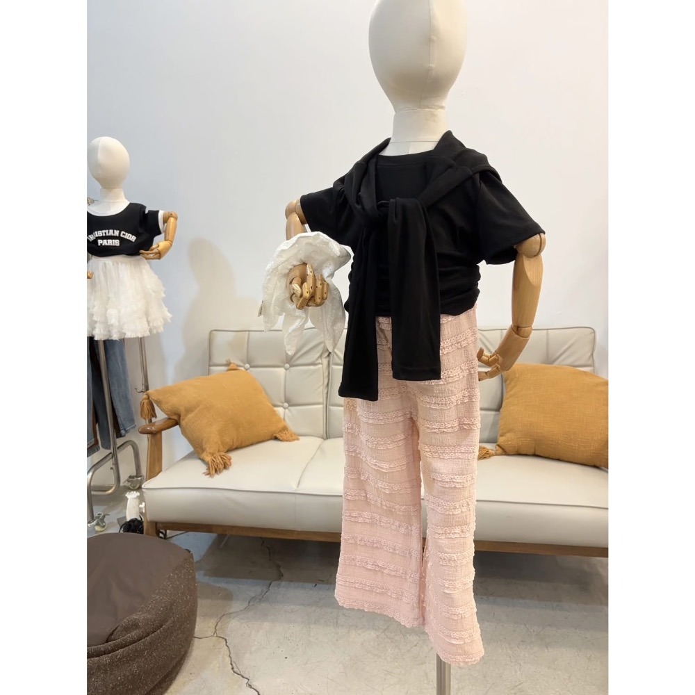 10484大女孩粉色蕾絲小喇叭褲/8折