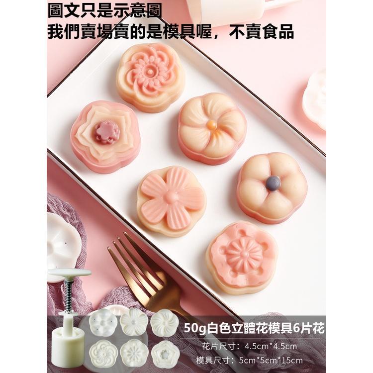 臺灣出貨 現貨 歐思麥烘焙 新款 月餅模具家用壓花手壓式做綠豆糕的模型印具冰皮糕點烘焙50克立體花瓣6片花(巨)