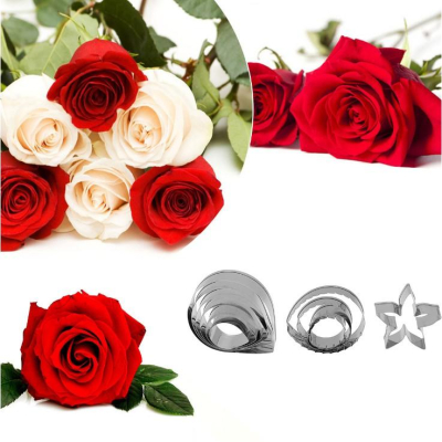 不銹鋼糖花切模 玫瑰花花瓣葉子花萼大套裝 品名:玫瑰花花瓣葉子花萼模具 用途:用於翻糖糖花製作,模擬玫瑰,廣泛應用於陶瓷、粘土、軟陶等 材質:進口430不銹鋼 包裝:吸卡 重量:插卡包裝每套55g 尺寸:花瓣__-如圖 葉子__-如圖 花萼__-如圖 使用方法:將翻糖先放在翻糖矽膠墊上用擀麵杖擀平,然後用這款花瓣模具的10個款分別切2-3個相同尺寸的花瓣形狀,在花瓣的中間處插入提前準備好的鐵絲,將其放在海綿墊上,使用不銹鋼雕刻組將花瓣的邊緣擀出花瓣邊緣的立體感,接著將準備好的色素塗抹上去,然後將花瓣放在晾花墊上晾一段時間。用葉子做出模擬葉子花萼,加上素色,放一起晾乾定型。最後花瓣花萼葉子都定型後,將他們組合在一起,即是一朵美麗逼真的玫瑰花。