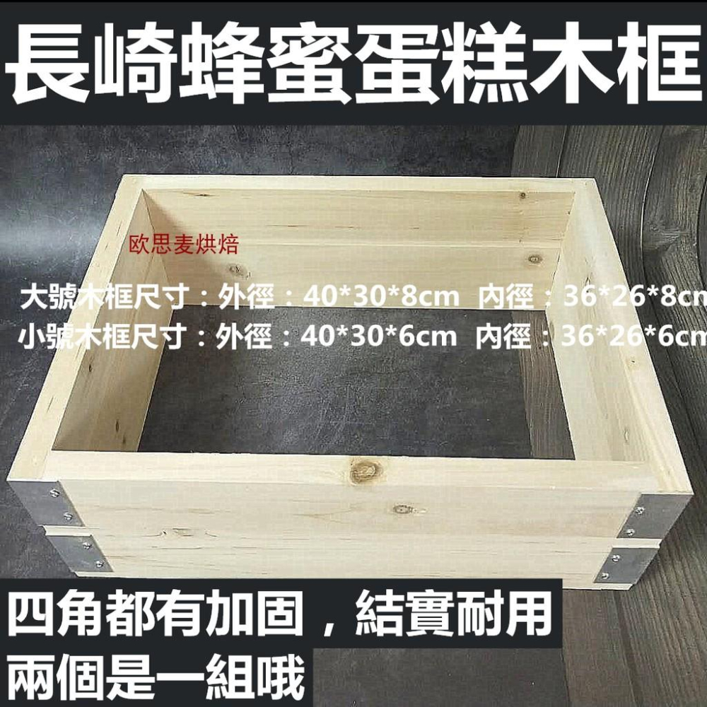 長崎蜂蜜蛋糕歷史悠長,這種用砂糖雞蛋和麵粉做成的糕點在民間很受歡迎。 大號木框尺寸:外徑:40*30*8cm 內徑:36*26*8cm(手工測量,允許有1-3mm誤差) 小號木框尺寸:外徑:40*30*6cm 內徑:36*26*6cm(手工測量,允許有1-3mm誤差) 注意:圖片都是實拍,木框都是手工製作,可能有些許瑕疵,完美主義者慎拍,介意者慎拍