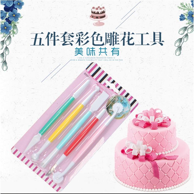 臺灣現貨 歐思麥烘焙5件套翻糖雕刻筆 粘土陶泥手工製作蛋糕造型糖藝塑型工具雕花工具(凯)