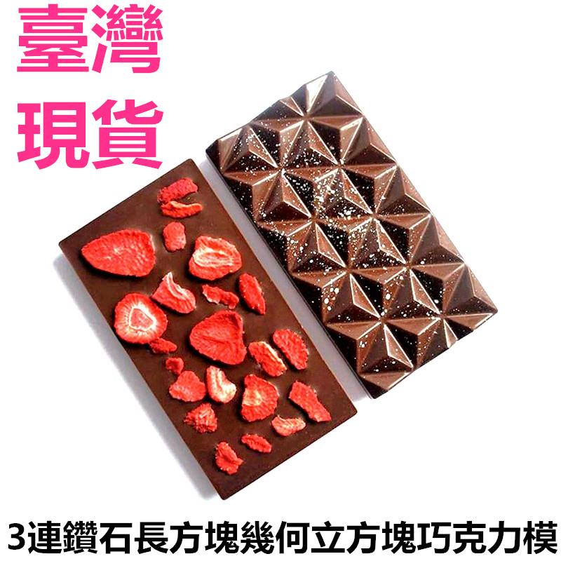 臺灣現貨 歐思麥烘焙 新款3連鑽石長方塊幾何立方塊巧克力模PC朱古力模DIY烘焙用具(添)