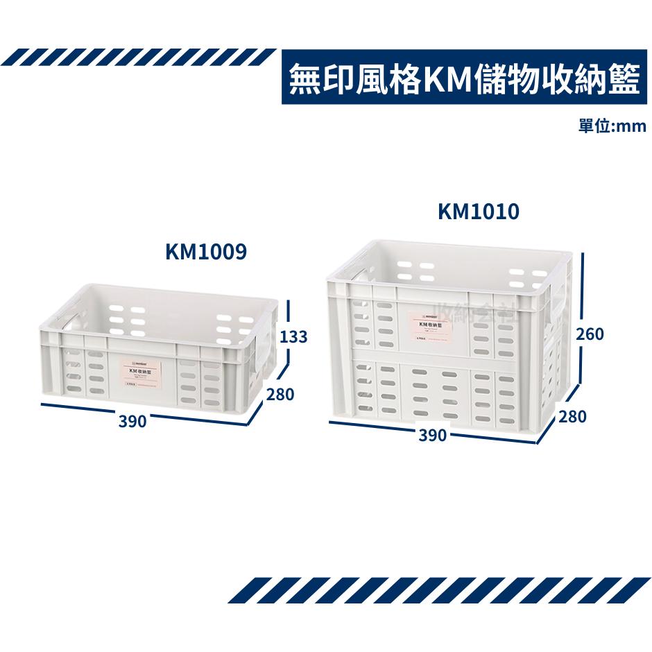 KM1009 KM儲物收納籃(超商及蝦皮店到店上限2個) 產品編號:KM1009 尺寸:280x390x133mm 容量:12 L KM1010 KM儲物收納籃(深型)(超商及蝦皮店到店上限1個) 產品編號:KM1010 尺寸:280x390x260mm 容量:23 L 產品材質:PP(聚丙烯) 產品顏色:淺灰 產品特色 厚實結構設計,堆疊堅實穩固。四面均有美觀的孔洞設計,讓置物通風透氣。兩側加強片的手把,寬厚好握,提取重物時不痛手。適合搭配系統櫃及市售的鐵力士架、三空櫃使用。