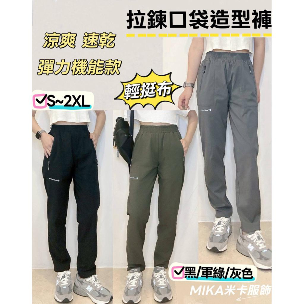 《MIKA米卡服飾》現貨 拉鍊口袋褲 速乾褲 長褲 黑褲 工作褲 哈倫褲 運動褲 顯瘦 拉鍊褲 涼感褲女裝
