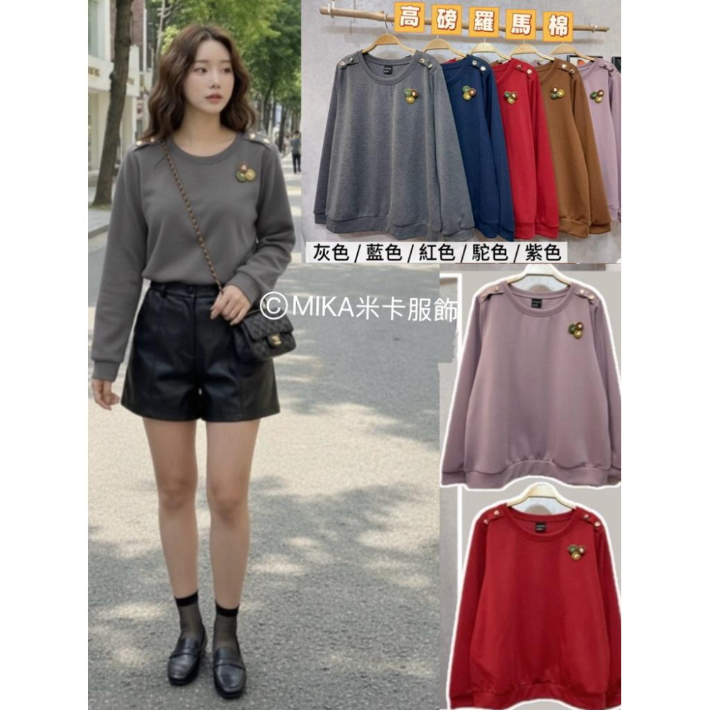 《MIKA米卡服飾》現貨 韓系小花別針上衣 長袖上衣 長袖T恤 韓版棉T 棉T 素T 素面 長袖 圓領 羅馬棉 女裝