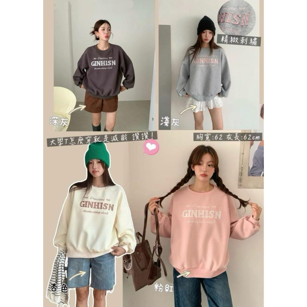 🌟韓系重工刺繡字母大學T 👉穿上這件,立刻變身韓系休閒女孩 👉柔軟親膚布料+精緻立體刺繡,質感滿分 👉微寬鬆版型修飾身形,怎麼搭都好看~ 👉超級推薦~布料舒服好穿,穿起來超級好看