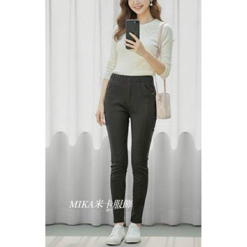 《MIKA米卡服飾》現貨 顯瘦褲 彈力褲 黑褲 3D剪裁 合身褲 雪花褲 刷白 側車線 工作褲 素面 挺布 秋冬 女裝