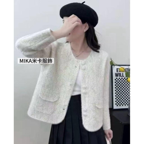 《MIKA米卡服飾》小香風外套 水貂絨外套 小香外套 外套 小香風 針織 針織外套 開釦外套 長袖 開衫上衣 女裝