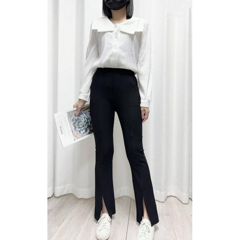 《MIKA米卡服飾》喇叭褲 工作褲 開衩褲 收腹褲 彈力褲 黑色長褲 顯瘦褲 學生褲 上班褲 女裝