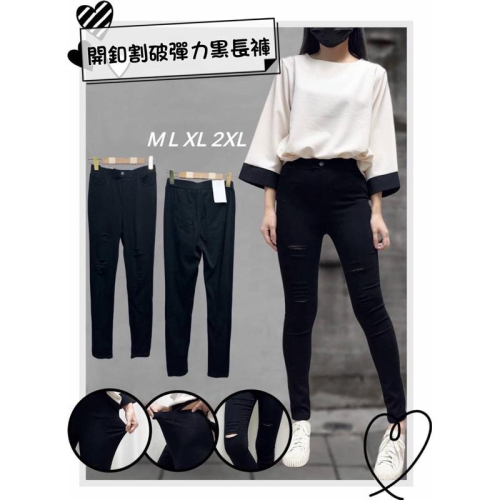《MIKA米卡服飾》開釦拉鍊割破黑長褲 激瘦破褲 窄管褲 鉛筆褲 黑褲 合身褲 刷破褲 開釦拉鍊褲 抓破 破褲 快速出貨