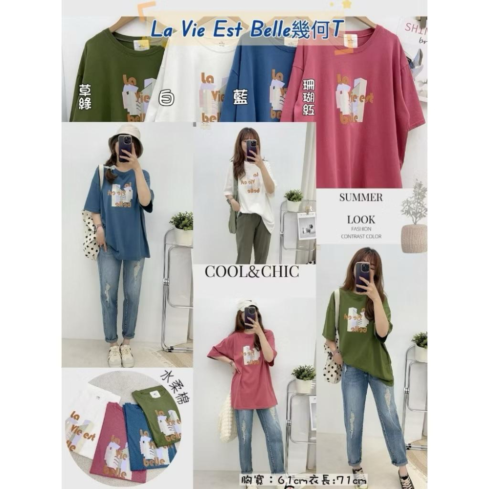 《MIKA米卡服飾》現貨 幾何圖T 長版T 韓版棉T 寬鬆舒服 短袖T恤 短袖上衣 短袖棉T 棉T 長版棉T 女裝 夏季