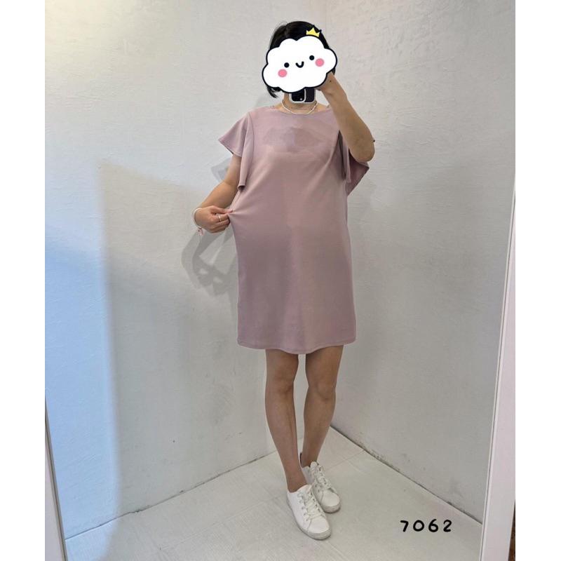 《MIKA米卡服飾》韓系長洋裝 荷葉袖洋裝 素面洋裝 薄棉洋裝 長版上衣 韓版棉T 長版棉T 涼棉洋裝 素面 圓領 女裝