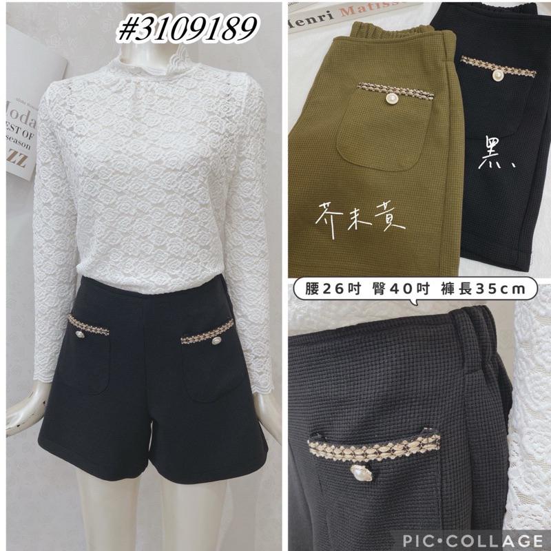《MIKA米卡服飾》小香風短褲 小香短褲 顯瘦短褲 A字短褲 珠釦小香風短褲 時尚短褲 鬆餅格短褲 上班褲 9189