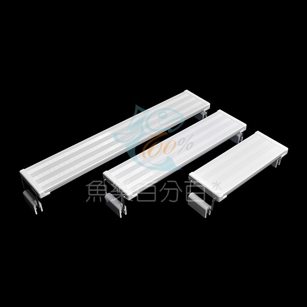 - 將魚缸燈兩邊支架(可伸縮)對稱調整至魚缸對應長度,然後將跨架上塑膠固定夾卡在魚缸缸壁上。