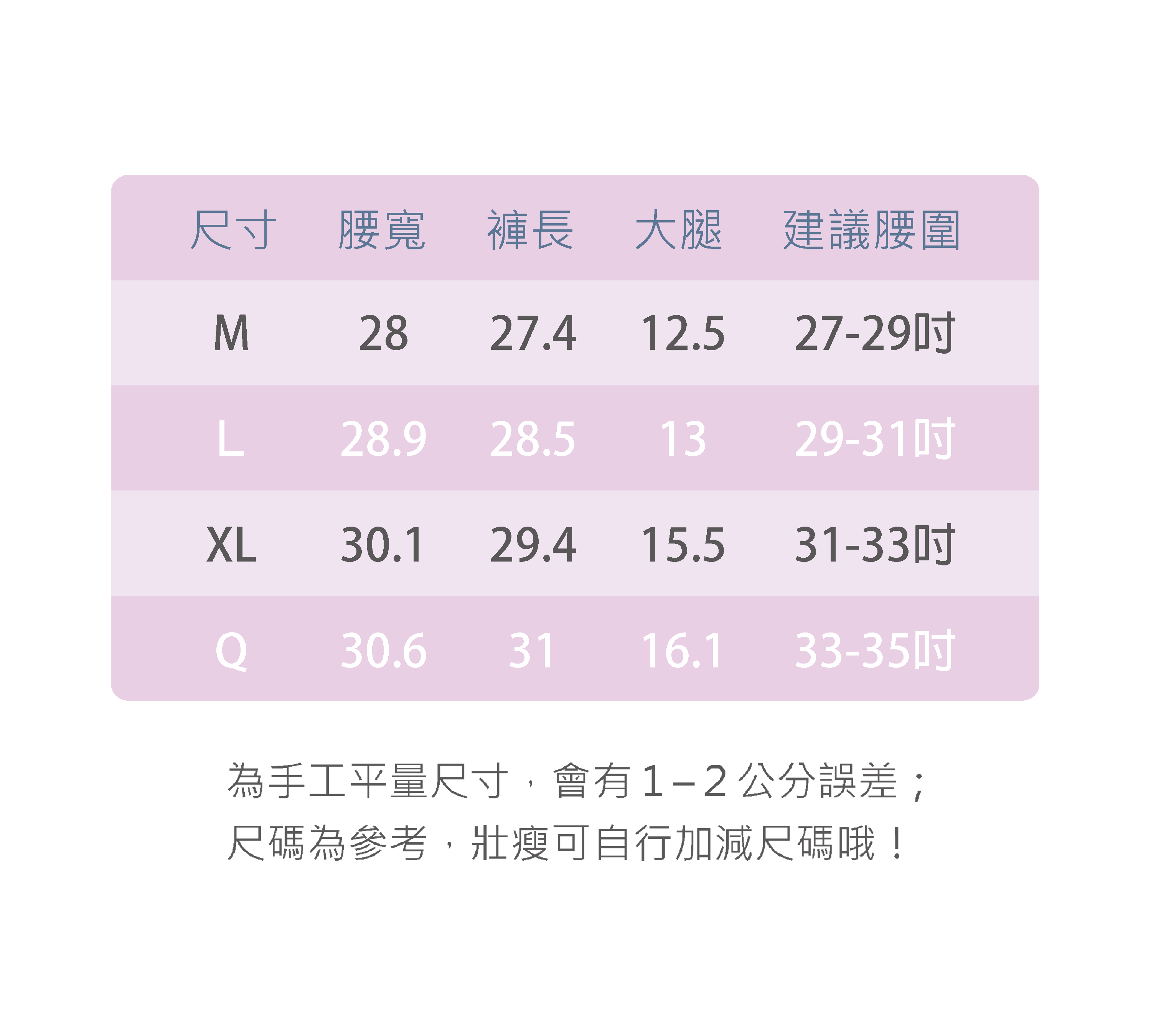 【尺寸】M/L/XL/Q(如尺寸圖所示)