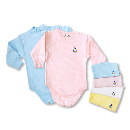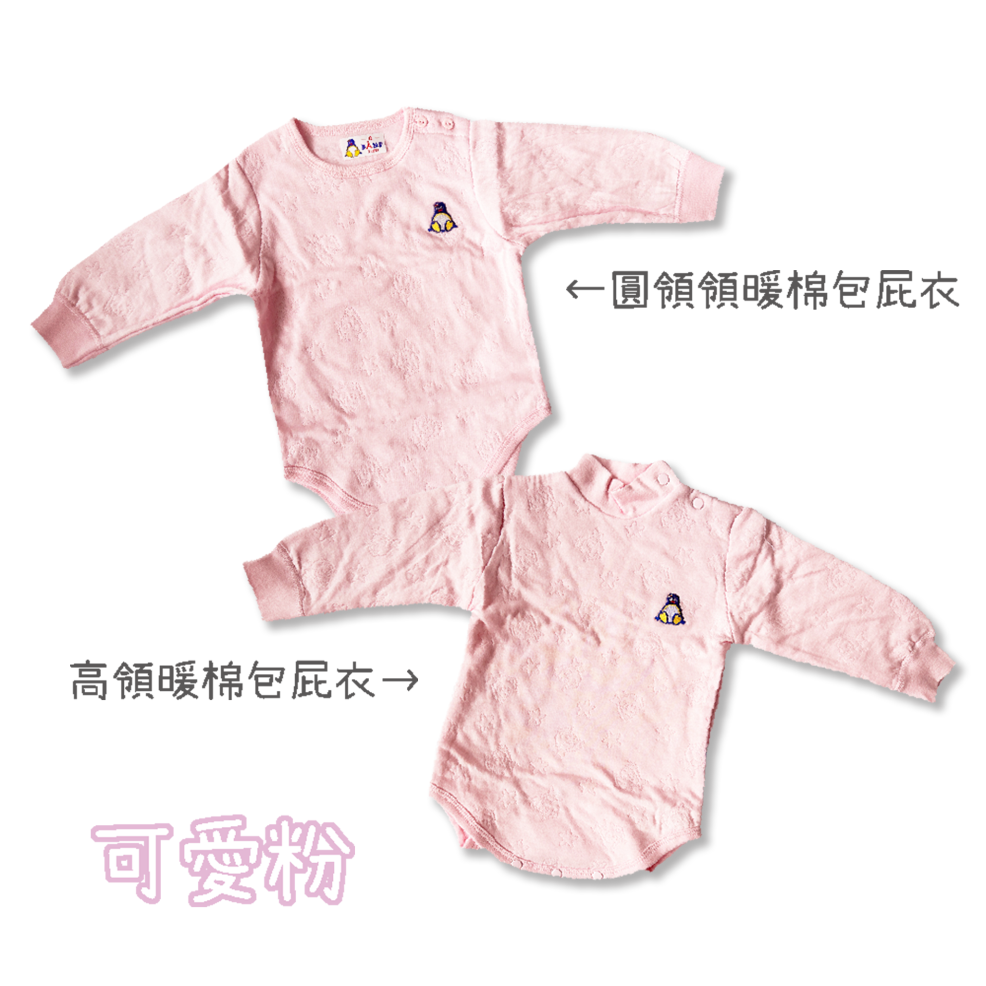 圓領/高領 皆採肩扣設計,方便嬰幼兒穿脫。