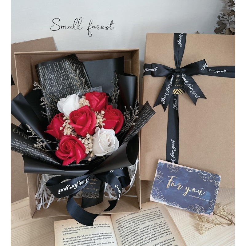 🌿399元商品內容包含:香皂花束+燈串(鈕扣電池)+卡片(隨機款式)+牛皮紙禮盒+提袋(卡其色)。