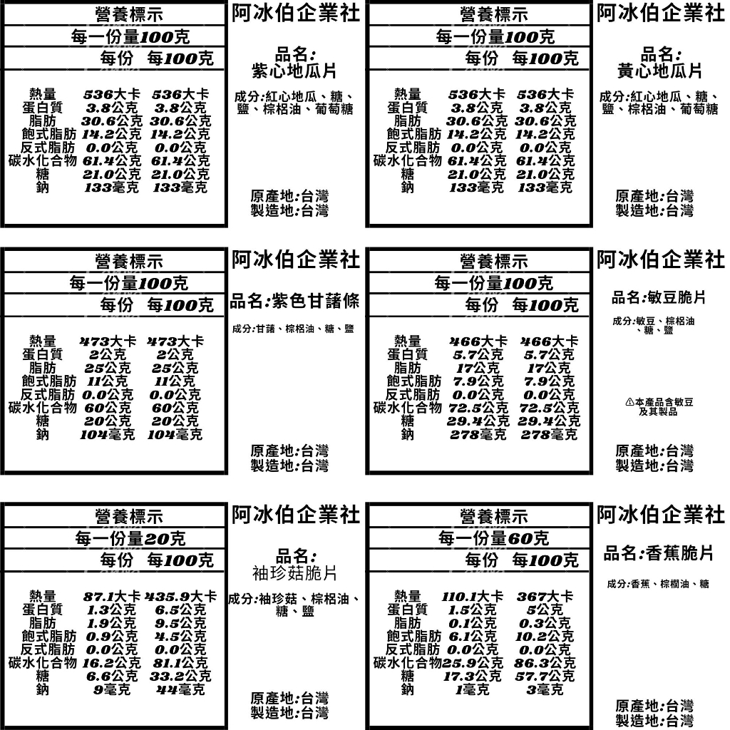 • 8.紫地瓜條 60g 8.紫地瓜條 60g