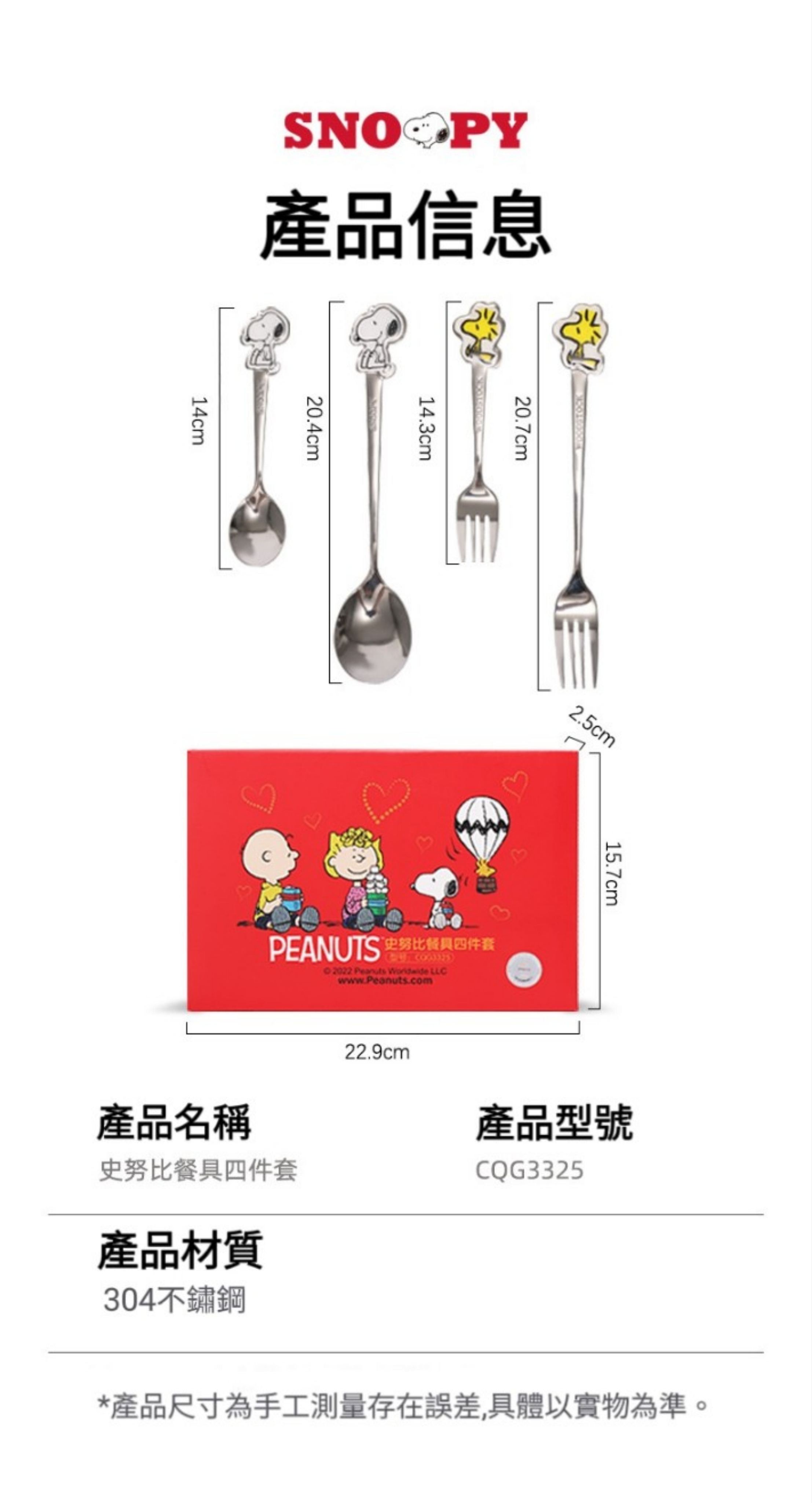 官方正品 Snoopy 史努比 304不鏽鋼 餐具 四件組 送禮 家用 禮物