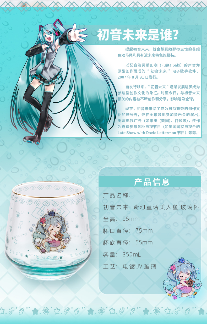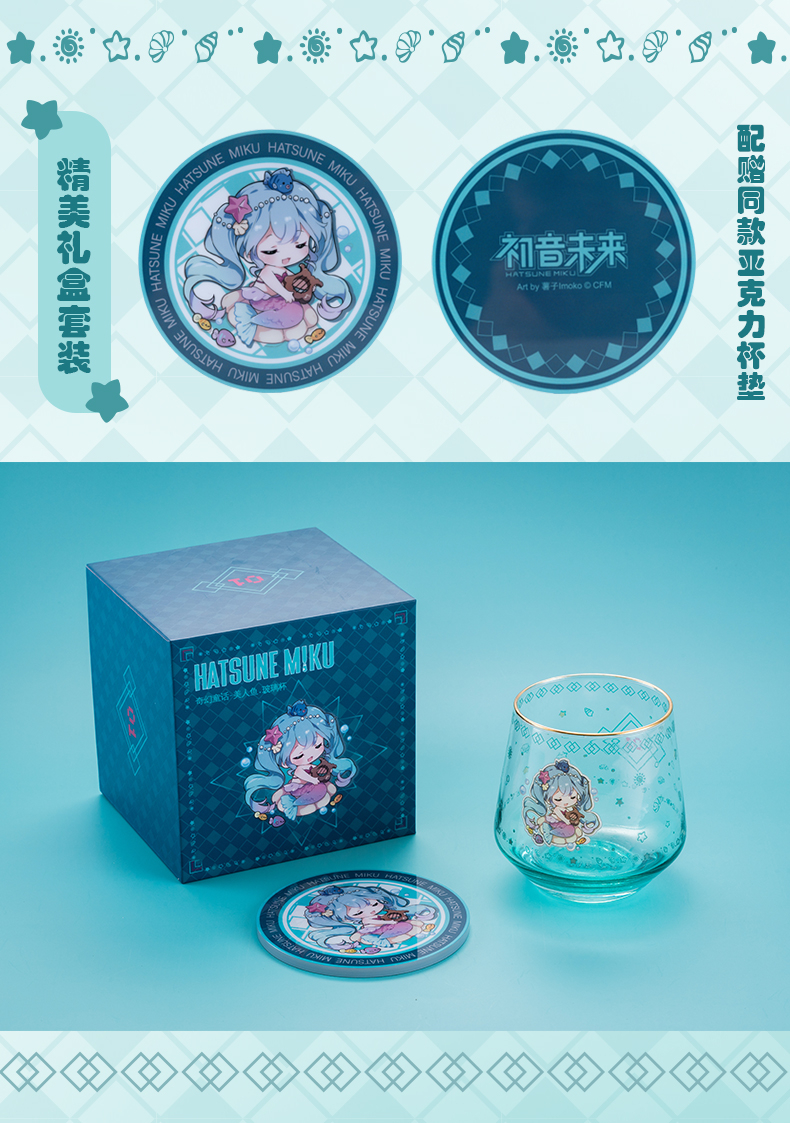 Moeyu 初音未來 奇幻童話 美人魚 玻璃杯 配套 亞克力杯墊 水杯 果汁杯