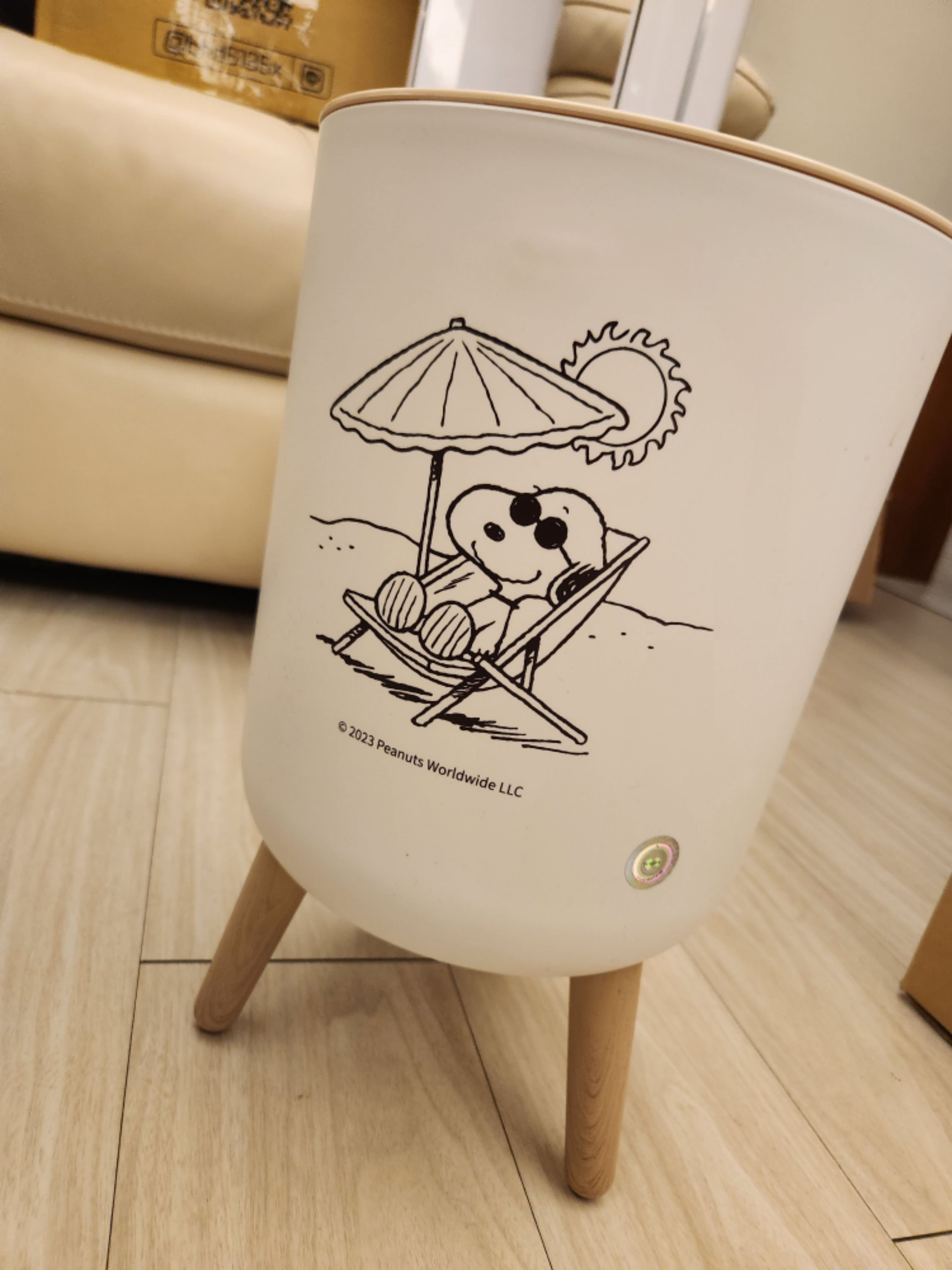 正版 史努比 ins 日式原木風 Snoopy 史努比 垃圾桶 彈蓋 可愛 家用 客廳 宿舍 高腳 落地